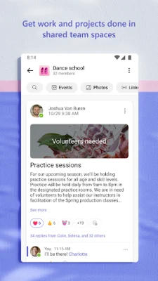 مائیکروسافٹ ٹیمز کے ساتھ مل کر منصوبوں اور پروجیکٹس کو کامیابی سے ہمکنار کرنا آسان ہو جاتا ہے۔ اہم لمحات کو تیزی سے شیئر کرنے کے لیے چیٹس میں تصاویر اور ویڈیوز بھیجیں، اور چلتے پھرتے مشترکہ دستاویزات اور فائلوں تک رسائی کے لیے کلاؤڈ سٹوریج کا استعمال کریں۔ کمیونٹی میں مشترکہ مواد — جیسے واقعات، تصاویر، لنکس، اور فائلز — کو منظم کریں تاکہ تلاش میں وقت ضائع نہ ہو۔ میٹنگز کو مزید موثر بنانے کے لیے سکرین شیئر، وائٹ بورڈ اور ورچوئل رومز میں بریک آؤٹ جیسی خصوصیات سے فائدہ اٹھائیں۔ معلومات تک رسائی کا انتظام کریں تاکہ اس بات کو یقینی بنایا جا سکے کہ صحیح افراد کو صحیح معلومات تک رسائی حاصل ہو، چاہے لوگ منصوبوں میں شامل ہوں یا انہیں چھوڑیں۔ ٹاسک لسٹ کا استعمال کرتے ہوئے منصوبوں اور اہداف پر نظر رکھیں — کام تفویض کریں، آخری تاریخیں مقرر کریں، اور آئٹمز کو مکمل ہونے پر نشان زد کریں تاکہ ہر کوئی ایک ہی صفحے پر رہے۔